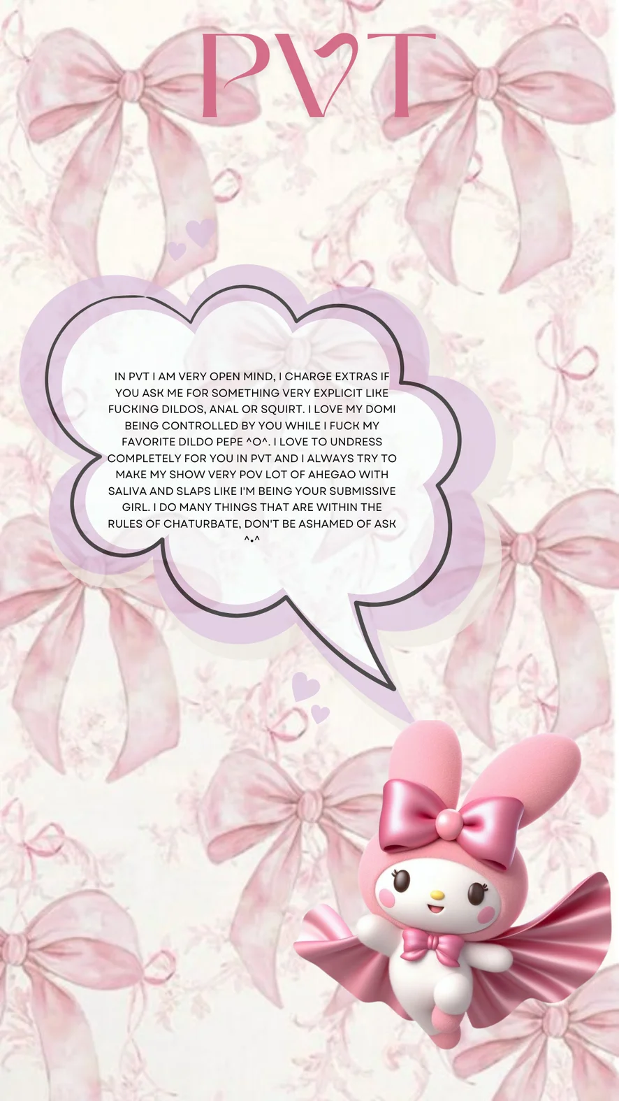Ахэгао, Верблюжья лапка, Эротические танцы, Грязные разговоры, Унижение, Между грудей, Шоу с маслом, Шлепки, Рейтинг члена, Косплей, Дилдо или вибратор, Фут-фетиш, Глубокая глотка, Ролевые игры, Секс-игрушки, Кримпай, Из попки в рот, Двойное проникновение, Душ, Поза "69", Сквирт, Тверкинг, Поза наездницы